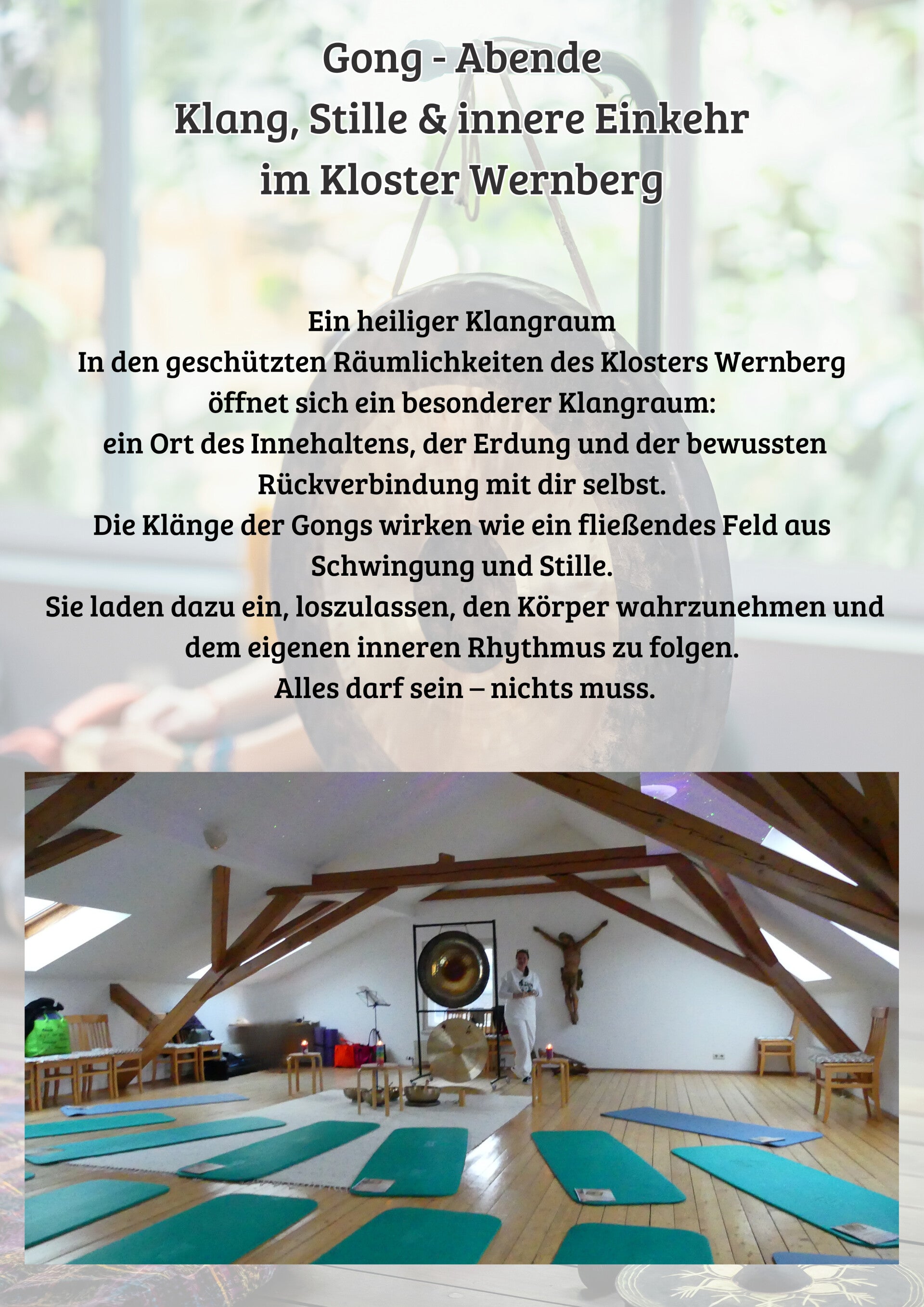 In den Räumen des Kloster Wernberg entfalten die Gongs ihre Schwingungen wie Wellen – tragend, weit und still zugleich.
